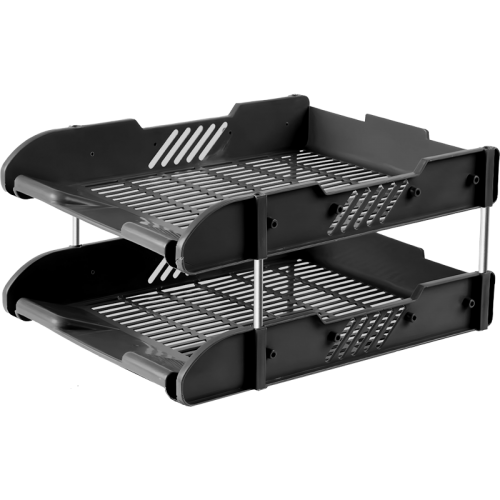 Лоток для бумаг ORANGE PEEL Premium горизонтальный металлический черный, 2 секции 350*294*188 мм..