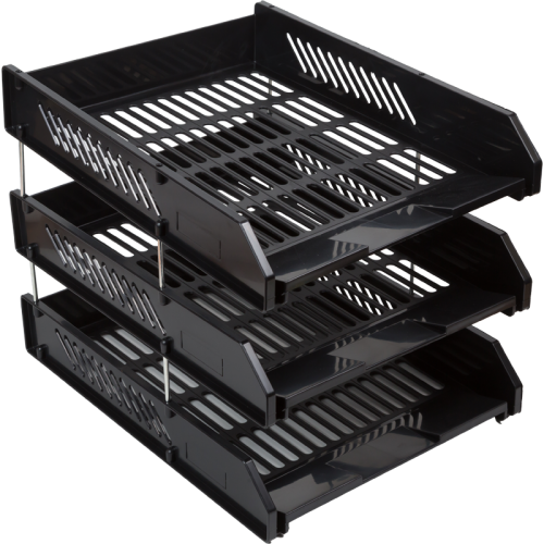 Лоток для бумаг 3-x секционный A4 "deVENTE" размер 258x332x255 мм, полистирол, металлические штыри, для бумаги формата А4, черный, индивидуальная упаковка..