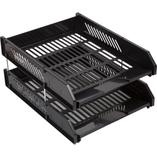 Лоток для бумаг 2-x секционный A4 "deVENTE" размер 258x332x155 мм, полистирол, металлические штыри, для бумаги формата А4, черный, индивидуальная упаковка..