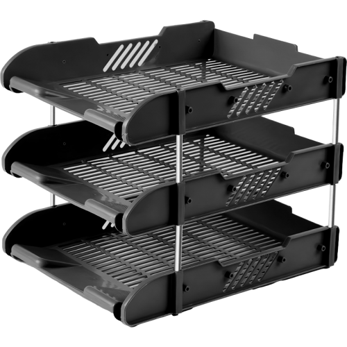 Лоток для бумаг 3-x секционный A4 "Attomex" размер 240x325x250 мм, полипропилен, пластиковые штыри, для бумаги формата А4, черный, индивидуальная упаковка..