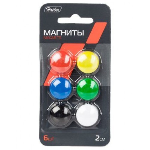 Магниты для сухостираемых досок ХАТБЕР цветные d=20 мм 6 шт./уп. (SM_02069) (040759)