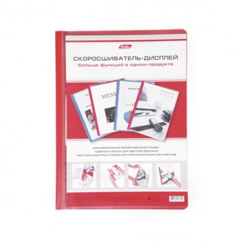 ASp_04503 Папка -Скоросшиватель А4ф Hatber Дисплей 150/240мкм Красная Пластиковая прозрачный верх..