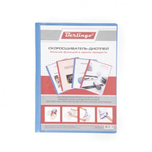 ASp_04502 Папка -Скоросшиватель А4ф Hatber Дисплей 150/240мкм Синяя Пластиковая прозрачный верх..