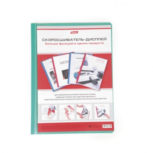 ASp_04504 Папка -Скоросшиватель А4ф Hatber Дисплей 150/240мкм Зеленая Пластиковая прозрачный верх..
