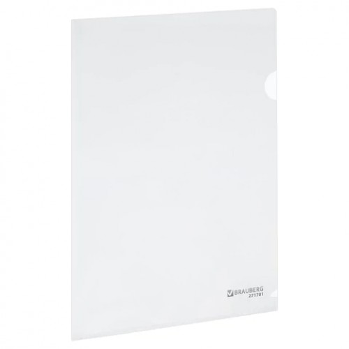 Папка-уголок жесткая А4, прозрачная, 0,15 мм, BRAUBERG EXTRA, 271701..