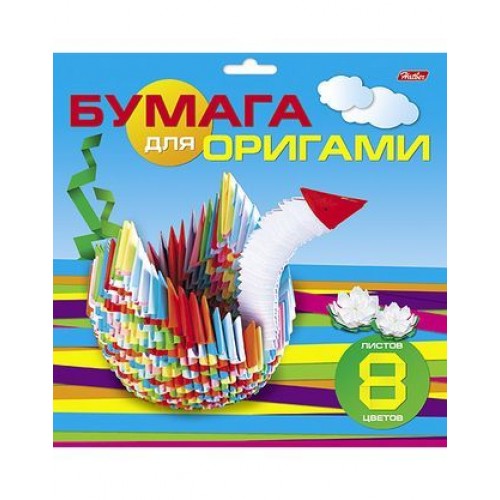 Набор цветной бумаги А4 ХАТБЕР "ЛЕБЕДЬ", 8л., 8цв., 200х200мм, тонированная для оригами (8Бц4о_14573