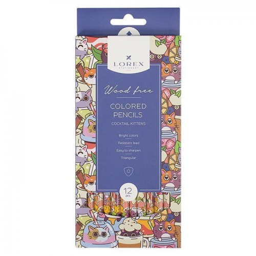 Карандаши цветные LOREX "WOOD FREE COCKTAIL KITTENS", 12 цв., трехгранные (LXCPWF12-CK) (209733)..