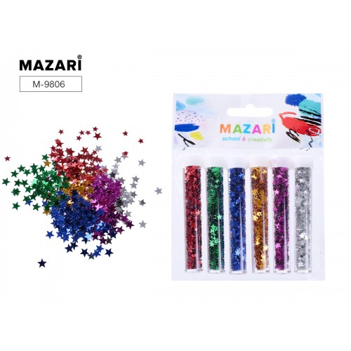 Набор звездочек декоративных, 6 цветов х 2.5 г, в пластиковых тубах, ОПП-упаковка с европодвесом..
