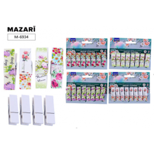 Прищепки декор. деревянные BRIGHT FLOWERS, 8 шт, размер 4.5х1.2 см, 4 дизайна в ассортименте, ОПП-упаковка..
