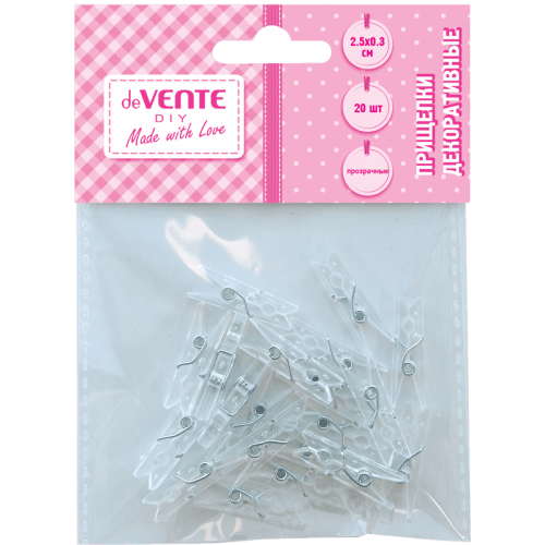 Прищепки декоративные "deVENTE. DIY Transparent" пластиковые, размер 25x3 мм, 20 шт, прозрачные, в пластиковом пакете с блистерным подвесом