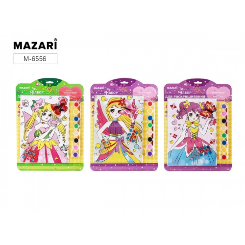 Набор для раскрашивания, 4 картинки, 1 кисточка, краски - 8 цветов, размер 25,2х35 см..