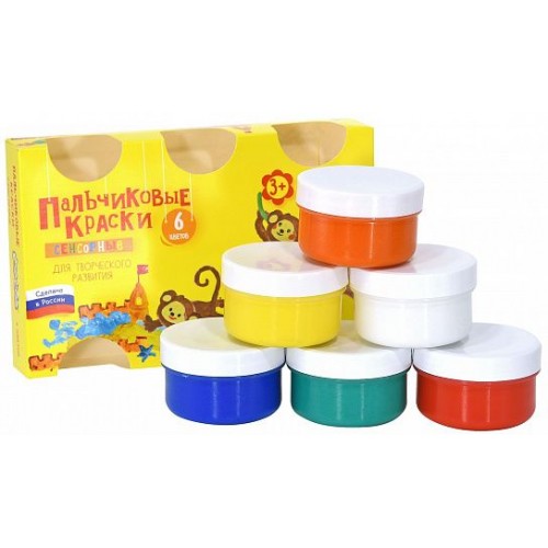 Краски пальчиковые КАЛЯКА-МАЛЯКА, 60 мл, 6 цв., сенсорные, карт. уп., 2+ (1/9) (ПКСКМ06) (157647)