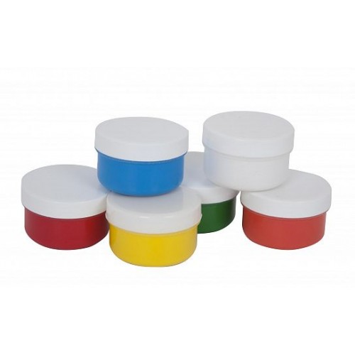 6 цветов красок в наборе: синий, зеленый, красный, желтый, белый, оранжевый.