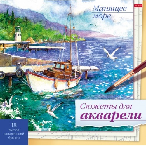 71555 72 18Р4_26270 Раскраска 18л А4ф для Акварели 210х210мм отрывная склейка жесткая подложка "Сюжеты для акварели"-Манящее море-
