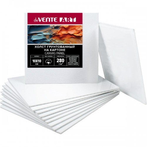 Холст на картоне 10x10 см грунтованный "deVENTE. ART" 100% хлопок 280 г/м2, мелкое зерно, цвет белый, термоусадочная пленка..
