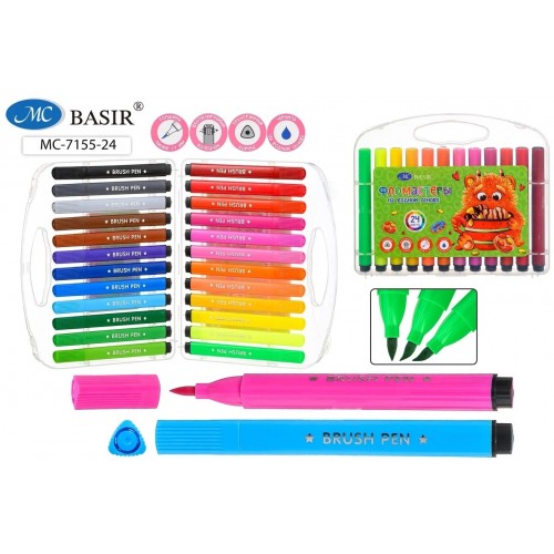 Набор фломастеров: "МОНСТРИКИ"; с мягкой кистью /толщина линии 1-7 mm/, на водной основе; трёхгранный цветной корпус, вентилируемый колпачок, упаковка-пластмассовый бокс, 24 цвета...
