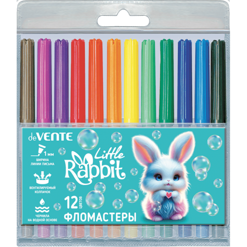 Фломастеры "deVENTE. Little Rabbit" 12 цветов с вентилируемым колпачком, в пластиковом блистере..