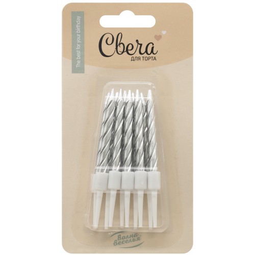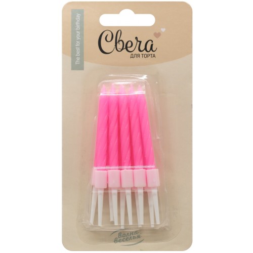 Набор свечей для торта ВОЛНА ВЕСЕЛЬЯ "СПИРАЛИ ЛЮКС", 0,4*13 + 3 см, держ., розовый металлик (802940)