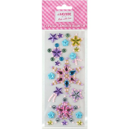 Стразы самоклеящиеся "deVENTE. Звезды" акриловые, карточка 7,5x18 cм, цвета ассорти, в пластиковом пакете с блистерным подвесом