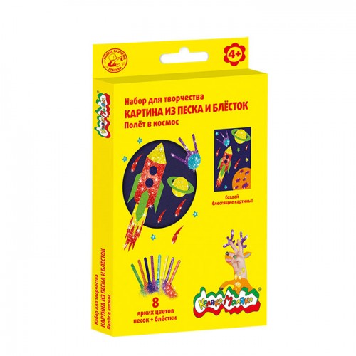 Набор для творчества песок с блестками КАЛЯКА-МАЛЯКА "ПОЛЕТ В КОСМОС", А4, 4+ (10 %) (1/60) (НПБПККМ