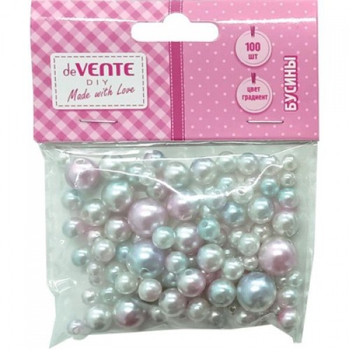 Бусины декоративные перламутровые "deVENTE. Sunshine" пластиковые, 100 шт, в пластиковом пакете с блистерным подвесом, 5 шт - 14 мм, 5шт - 12 мм, 20 шт - 10 мм, 70 шт - 6 и 8 мм, градиент ледяной рассвет..
