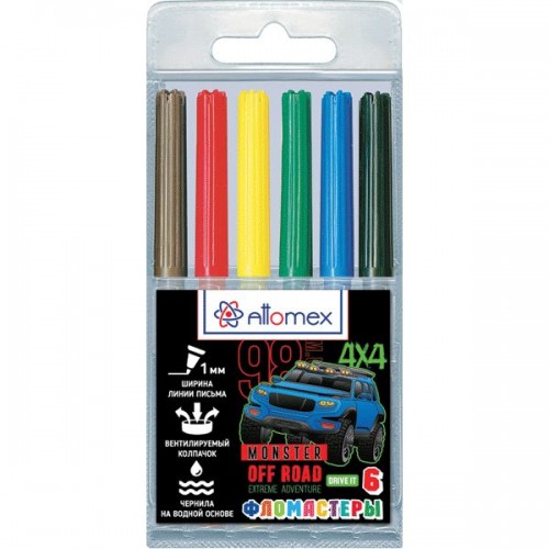 Фломастеры "Attomex. Offroad Monster" 06 цветов с вентилируемым колпачком, в пластиковом блистере