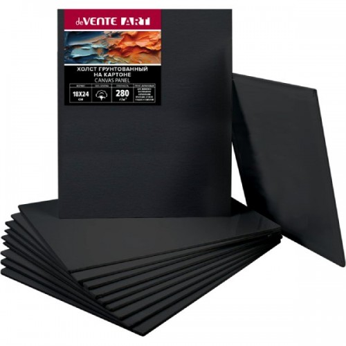 Холст на картоне 18x24 см грунтованный "deVENTE. ART" 100% хлопок 280 г/м2, мелкое зерно, цвет черный, термоусадочная пленка..