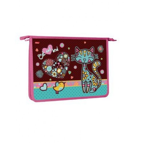 Папка для тетрадей А4 ХАТБЕР "КОШКА-ПОДРУЖКА", 2 отделения, пластиковая, на молнии (AMc_42060) (0462