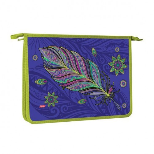 Папка для тетрадей А4 ХАТБЕР "ПЕРО ЖАР-ПТИЦЫ", 2 отделения, пластиковая, на молнии (AMc_24049) (0508