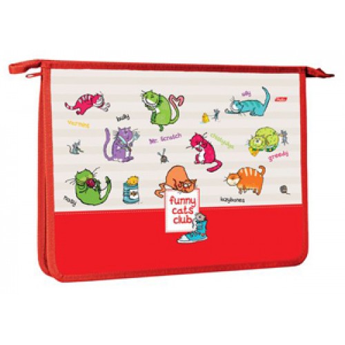 Папка для тетрадей А4 ХАТБЕР "ПРИКОЛЬНЫЕ КОТЫ", 1 отделение, пластиковая, на молнии (AMc_14041) (050