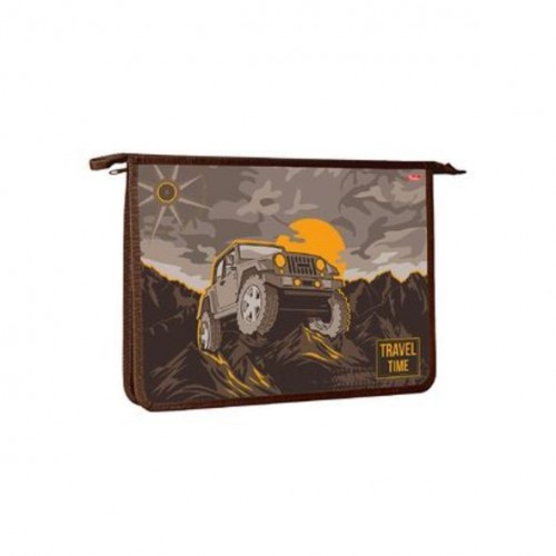 Папка для тетрадей А4 ХАТБЕР "TRAVEL", 2 отделения, пластиковая, на молнии (AMc_42056) (045937)