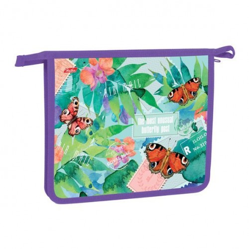 Папка для тетрадей А5 ХАТБЕР "БАБОЧКИ", 2 отделения, пластиковая, на молнии (AMc_25032) (050869)
