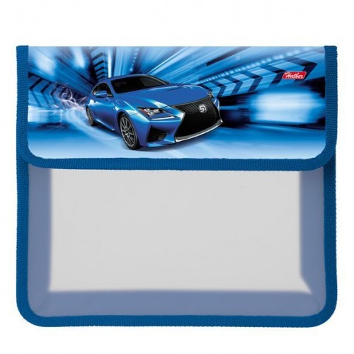Папка для тетрадей А5 ХАТБЕР "СИНИЙ АВТМОБИЛЬ", 2 отделения, пластиковая, на липучке (AMp_25067) (05
