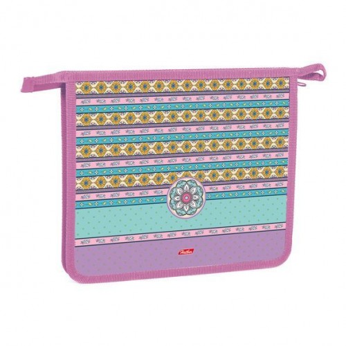 Папка для тетрадей А5 ХАТБЕР "ТОНКИЕ УЗОРЫ", 2 отделения, пластиковая, на молнии (AMc_25033) (050870