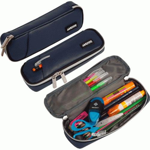Пенал "deVENTE. Private" 22x6x4 см, овальный для 40 предметов, матовая искусственная кожа до -40C, внешний карман, внутренний карман, с каучуковой аппликацией, темно-синий..