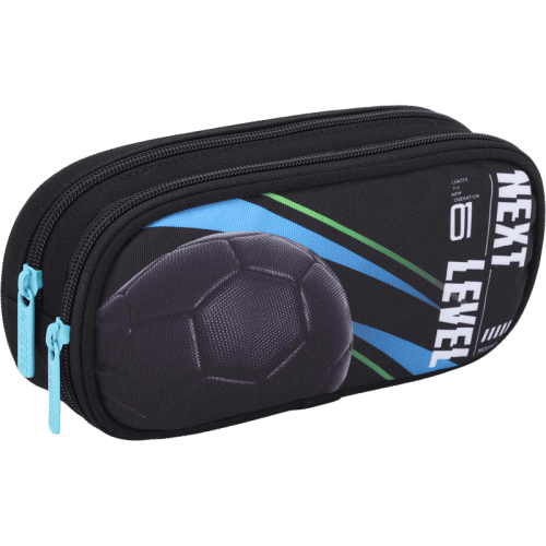 Пенал "deVENTE. Next Level Football" 22x9,5x7 см овальный, плотный износостойкий полиэстер с водоотталкивающей пропиткой, овальный формы с 2-мя отделениями на молнии для 60 предметов (одно с внутренним органайзером), черный..