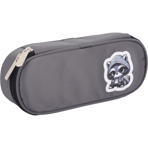 Пенал "deVENTE. Cool Raccoon" 210x80x50 мм овальный, плотный износостойкий нейлон с водоотталкивающей пропиткой, овальной формы на молнии для 50 предметов, с внутренним органайзером-створкой, с 2-мя бегунками, темно-серый..