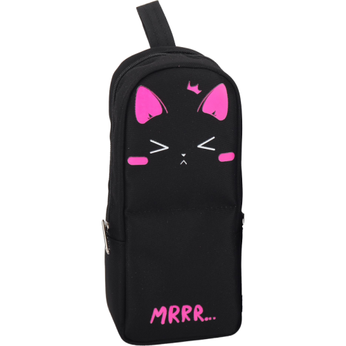 Пенал "deVENTE. Mrrr…" 210x90x60 мм прямоугольный, плотный износостойкий полиэстер с водоотталкивающей пропиткой, прямоугольной формы вертикальный на молнии, просторное отделение для 60 предметов, фиксация в открытом виде магнитом, с петлей, черный..