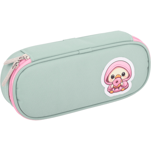 Пенал "deVENTE. Cute Duck" 210x80x50 мм овальный, плотный износостойкий нейлон с водоотталкивающей пропиткой, овальной формы на молнии для 50 предметов, с внутренним органайзером-створкой, с 2-мя бегунками, мятный..