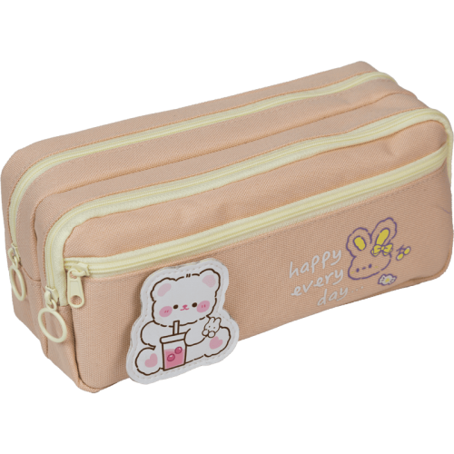 Пенал "deVENTE. Happy every day" 21x9x9 см, плотный износостойкий полиэстер с водоотталкивающей пропиткой, 2 отделения на молнии, прямоугольный для 80 предметов, внешний карман на молнии, аппликация на липучке, персиковый..