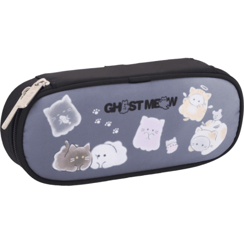 Пенал "deVENTE. Ghost Meow" 210x80x50 мм овальный, плотный износостойкий нейлон с водоотталкивающей пропиткой, овальной формы на молнии для 50 предметов, с внутренним органайзером-створкой, с 2-мя бегунками, черный..