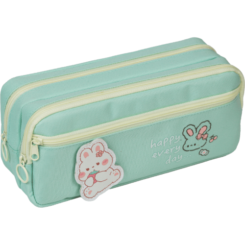Пенал "deVENTE. Happy every day" 210x90x90 мм, плотный износостойкий полиэстер с водоотталкивающей пропиткой, 2 отделения на молнии, прямоугольный для 80 предметов, внешний карман на молнии, аппликация на липучке, мятный..