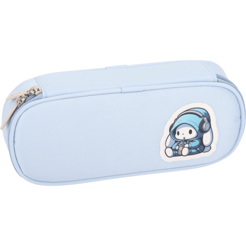 Пенал "deVENTE. Music Rabbit" 210x80x50 мм овальный, плотный износостойкий нейлон с водоотталкивающей пропиткой, овальной формы на молнии для 50 предметов, с внутренним органайзером-створкой, с 2-мя бегунками, серо-голубой..