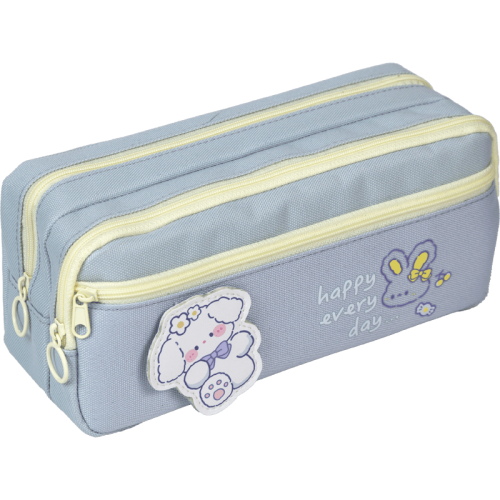 Пенал "deVENTE. Happy every day" 21x9x9 см, плотный износостойкий полиэстер с водоотталкивающей пропиткой, 2 отделения на молнии, прямоугольный для 80 предметов, внешний карман на молнии, аппликация на липучке, небесный..