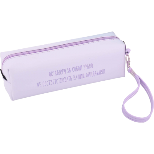Пенал-косметичка "deVENTE. Оставляю за собой право не соответствовать вашим ожиданиям" 215x80x50 мм, матовая искусственная кожа до -40C, отделение на молнии, прямоугольный для 75 предметов, с ручкой-петлей на карабине, лавандовый..