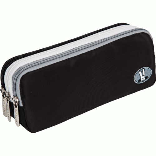 Пенал "deVENTE. Fluffy Ears. Rabbit" 21x8,5x5,5 см, прямоугольный для 60 предметов, нейлон, 3 отделения на молнии, с молниями 3-х цветов, вышивка, серо-черный..