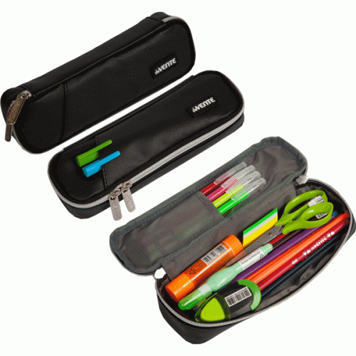 Пенал "deVENTE. Private" 22x6x4 см, овальный для 40 предметов, матовая искусственная кожа до -40C, внешний карман, внутренний карман, с каучуковой аппликацией, черный..