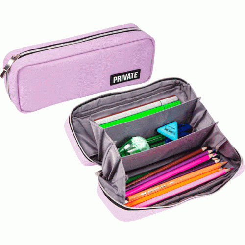 Пенал "deVENTE. Private" 21x9x5 см, прямоугольный для 60 предметов, матовая искусственная кожа до -40C, на молнии, 3 внутренних отделения с перегородками, с каучуковой аппликацией, сиреневый..