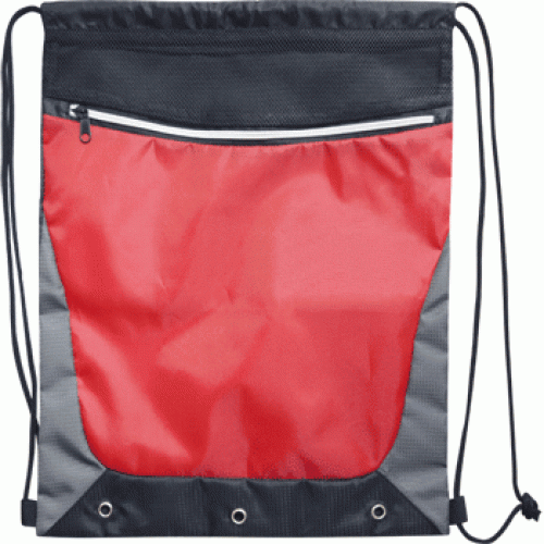 Сумка для сменной обуви "deVENTE" 35x44 см, 1 отделение, внешний карман на молнии, водоотталкивающая ткань и дышащая сетчатая ткань, люверсы для вентиляции, на веревочной завязке, черная с серым и красным