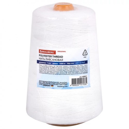Нить лавсановая для прошивки, БЕЛАЯ диаметр 1 мм, 1000 м, ЛШ 210, BRAUBERG ORIGINAL, 608921..